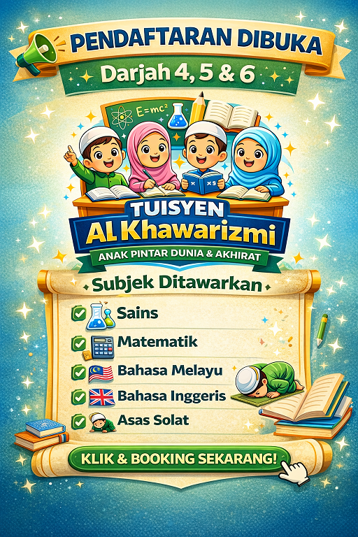 Tuisyen Al Khawarizmi menggabungkan akademik, pembinaan sahsiah dan budi bahasa bagi melahirkan anak yang seimbang dari segi ilmu, iman dan bahasa.